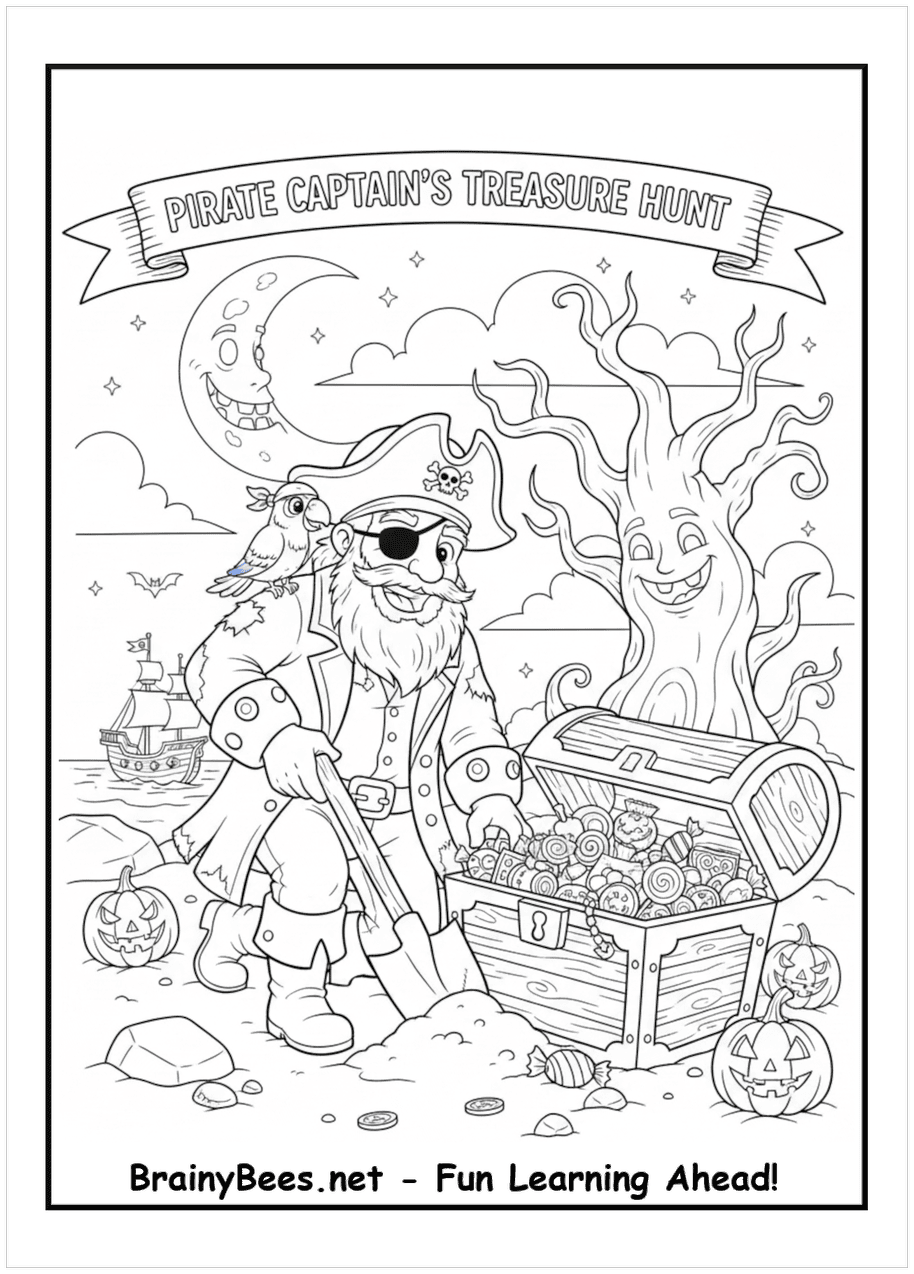 Halloween Pirate Treasure Trunk Coloring Page | BrainyBees