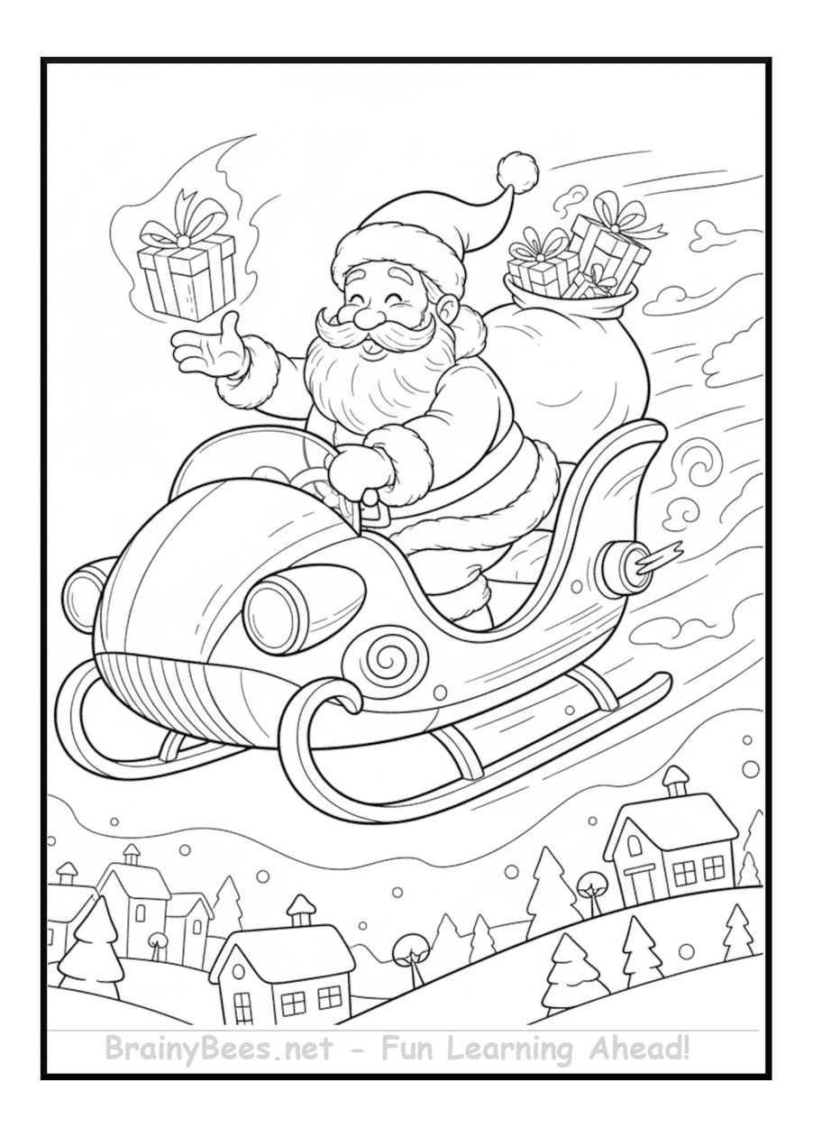 Christmas Santa Gifts Snow Sled Mobile Coloring Page | BrainyBees