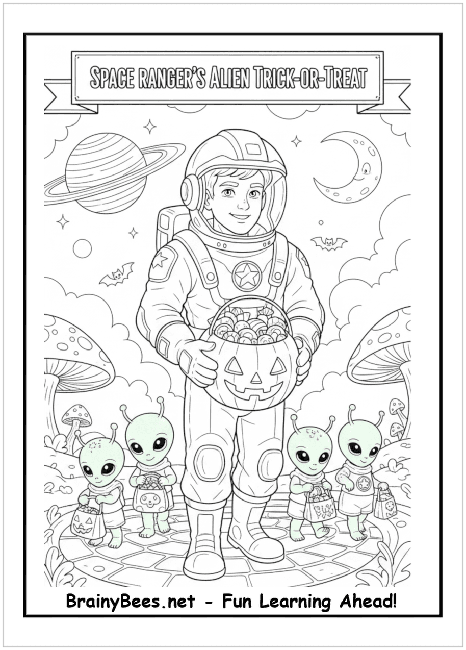 Halloween Alien Space Ranger Coloring Page | BrainyBees