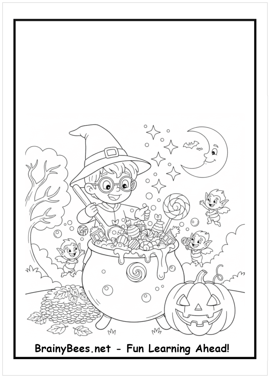 Halloween Boy Magic Candy Angels Pumpkin Coloring Page | BrainyBees